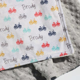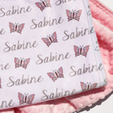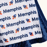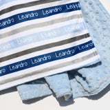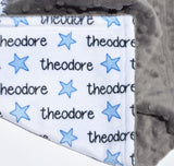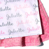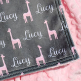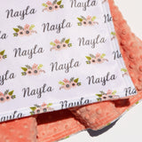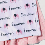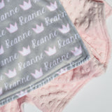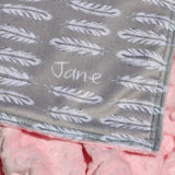 Our double minky blankets are the best! The front is a personalized smooth minky (100% polyester) and the back is your choice of minky dimple dot. The Boco Baby double minky blanket will be a cherished heirloom! It will never fade and will stay just as soft as the first time your baby touches it.