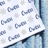 Our double minky blankets are the best! The front is a personalized smooth minky (100% polyester) and the back is your choice of minky dimple dot. The Boco Baby double minky blanket will be a cherished heirloom!